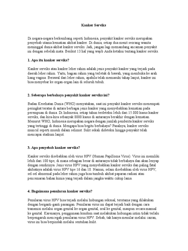 Kanker Serviks Dalam Bahasa Inggris : Maybe you would like to learn more about one of these?